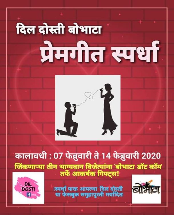 या ग्रुपच्या उपक्रमांचाच एक भाग म्हणून 'बोभाटा' पोर्टल व 'दिल दोस्ती आणि बरंच काही…' ग्रुप या दोघांच्या संयुक्त विद्यमाने व्हॅलेंटाईन आठवड्याच्या निमित्ताने गाण्यांची ऑनलाइन स्पर्धा आयोजित करण्यात आली होती. या अभिनव स्पर्धेचे नाव होते 'दिल दोस्ती बोभाटा प्रेमगीत स्पर्धा'.