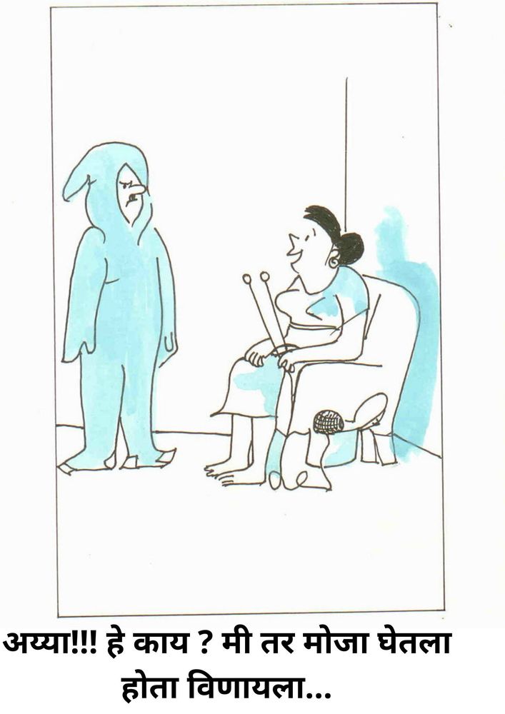 वर दिलेले व्यंगचित्र बघून तुम्ही हसलाच असाल याची आम्हाला खात्री आहे.बोभाटावर वर्षभरात आम्ही बरेच नवनवे प्रयोग करत असतो.या प्रयोगात व्यंगचित्रांची कमतरता कायम वाटत होती.आमचे अनेक मित्र चित्रकार छायाचित्रकार आहेत पण व्यंगचित्रकार नाहीत.गेले काही दिवस ही पोकळी भरून काढण्यासाठी आमच्या संग्रहातल्या व्यंगचित्रांना मराठी 'टच' देण्याचा आमचा प्रयोग चालू आहे.या कलाकृती साधारण १९५५ ते ६०च्या इंग्रजी मासीकातून घेतलेल्या आहेत.प्रयोग असा आहे की जुने व्यंगचित्र नवीन चित्रकारानी परत तयार करावे.जुने गाणे जसे नव्या आवाजात रेकॉर्ड करतात तसेच.असे नाही केले तर ही व्यंगचित्रे मराठी वाचकांपर्यंत कधीच पोहोचणार नाहीत. तुमच्या कमेंटची आम्ही वाट बघत आहोत.