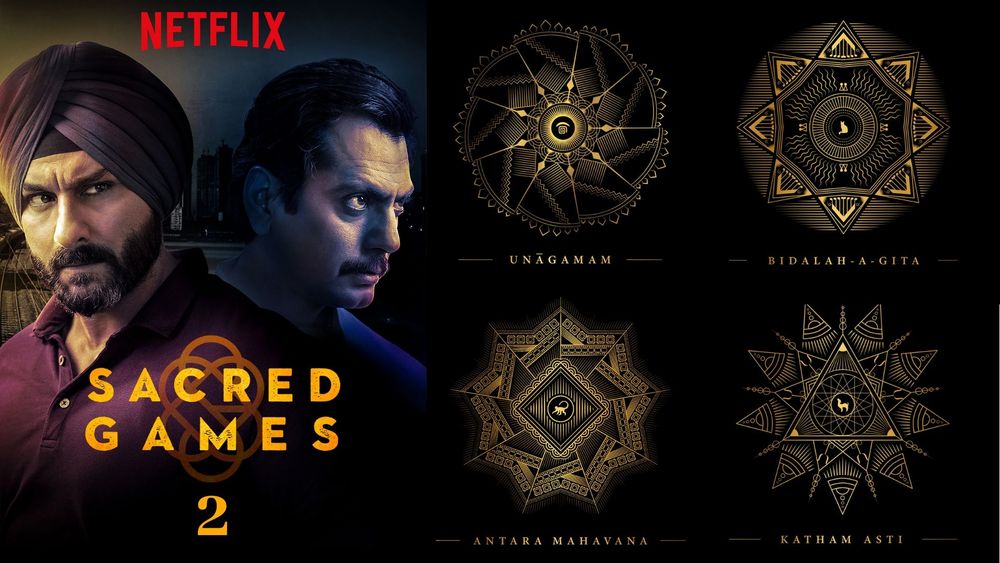या गोष्टीला एक आठवडा पूर्ण झाल्यानंतर आज त्या गूढ पोस्टर मागचा अर्थ समजला आहे. नेटफ्लिक्सने आज सेक्रेड गेम्सचे ४ पोस्टर्स लाँच केले आहेत. तशा अर्थाने यांना पोस्टर्स म्हणता येणार नाही कारण हे चारही सेक्रेड गेम्सच्या ४ एपिसोड्सचे टायटल्स आहेत. आता याचा अर्थ “सेक्रेड गेम्स २” मध्ये फक्त ४ एपिसोड्स असतील का ? तर इथे नेटफ्लिक्सने लोकांना नवीन गोंधळात टाकलं आहे. कारण या पोस्टर्स सोबत एक नोट पण आहे : “बोलो अहम् ब्रह्मास्मि। ६ दिन में सब कुछ दिखाई देने लगेगा।“