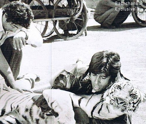 खून पसीना सिनेमाच्या शूटिंगच्या वेळचा फोटो. हा वाघ खरा आहे हं..