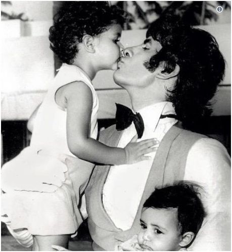 अमर अकबर अँथनीच्या सेटवर त्याची दोन्ही बाळं त्याला भेटायला आली होती, तेव्हाचा हा फोटो..