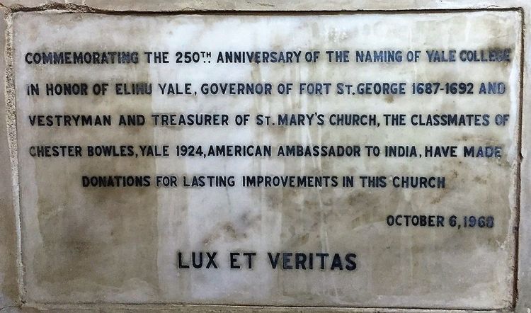 १६ व्या शतकात भारतात व्यापारात बस्तान बसविण्यासाठी इंग्लिश ईस्ट इंडिया कंपनी प्रयत्न करत होती. त्याकाळी इथे काम करण्यासाठी त्यांचे अनेक कर्मचारी येत असत. इलिहू येल हा इंग्लिश मनुष्य कारकून म्हणून १६८० साली भारतात आला. ईस्ट इंडिया कंपनीच्या कामानिमित्त आलेले काही कर्मचारी अतिशय धूर्त होते आणि इथून जाताना ते मालामाल होउन गेले. हा येलही त्यातलाच एक होता.