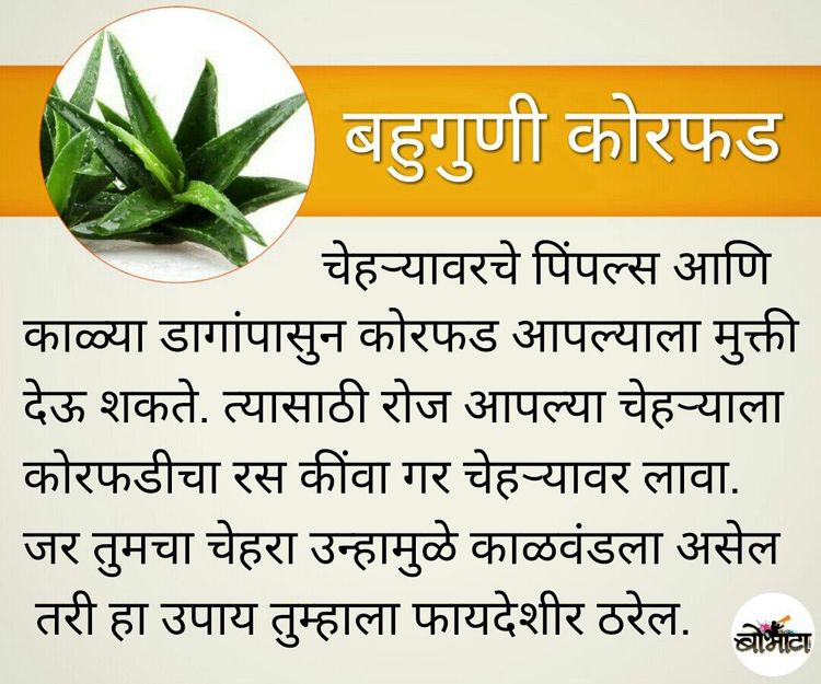 आपल्याकडे सहज मिळणारी कोरफड अत्यंत औषधी आहे. कोरफडीमध्ये १२ व्हीटामीन्स, १८ अमीनो आम्लं, २० खनिजं, ७५ पोषक तत्वे आणि २०० पेक्षा जास्त सक्रीय एंझाईम्स असतात. या जाणून घेऊया कोरफडीचे विविध औषधी उपयोग..