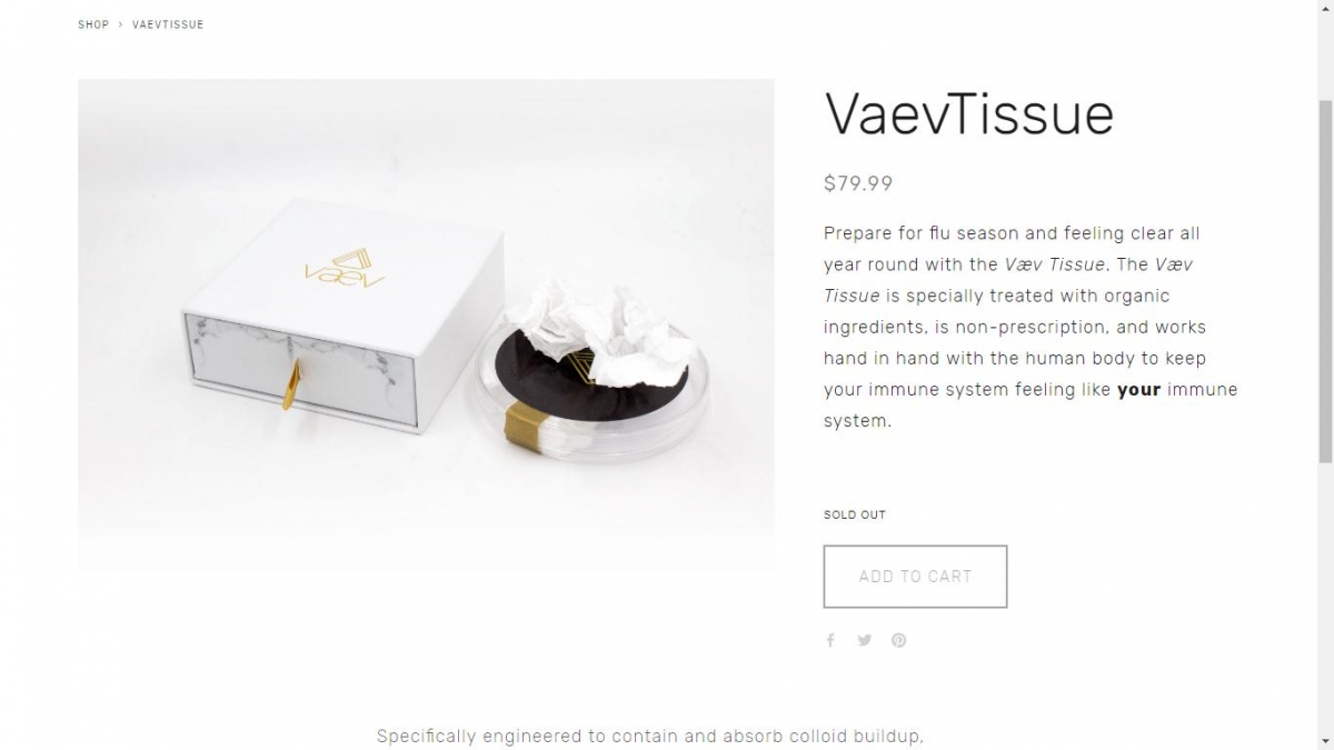 Vaev नावाची कंपनी चक्क रोगट टिश्युपेपर विकत आहे. हे टिश्युपेपर निरोगी व्यक्तीने नाकाला लावले की थोड्याच वेळात माणूस आजारी पडतो. म्हणजे आपण पाहिजे तेव्हा आजारी पडू शकतो. पण जर तुम्ही विचार करत असाल की हे टिश्युपेपर तर अगदी स्वस्त मिळत असतील. अगदी चूक !! हे टिश्युपेपर्स जवळजवळ ५६०० रुपयांचे आहेत. सावरून बसा आणखी एक धक्का द्यायचा आहे.