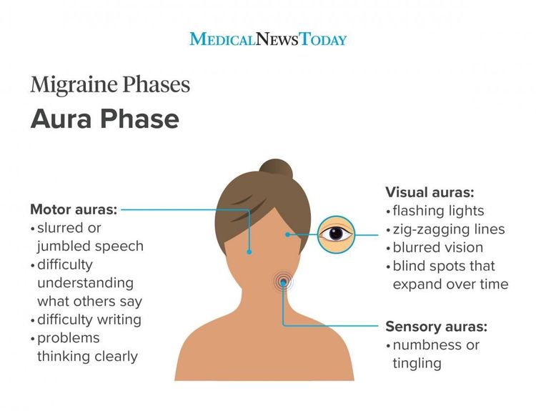 ऑरायुक्त मायग्रेनमध्ये दृष्टी, हालचाल, बोलणं यांच्याशी संबंधित समस्या दिसून येतात. उदाहरणार्थ स्पष्टपणे बोलता न येणं, चेहरा, हातपाय अशा ठिकाणी मुंग्या येणं, तात्पुरतं अंधत्व, डोळ्यांपुढे वेगवेगळे आकार, तेजस्वी ठिपके दिसणं.
