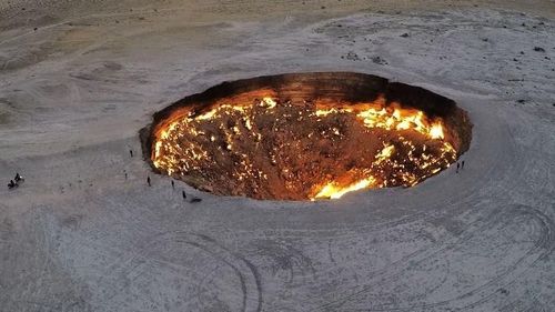 हा नरकाचा रस्ता म्हणजेच 'गेट टू हेल' आहे तुर्कमेनिस्तान नावाच्या देशात. हा देश त्याच्या सुंदर-सुरेख गालिच्यांसाठी आणि उत्तमोत्तम घोड्यांसाठी ओळखला जातो. १९७१ साली जेव्हा आजचा तुर्कमेनिस्तान हा सोव्हिएत यूनियनचा एक भाग होता त्यावेळची ही गोष्ट आहे. सोव्हिएतने तुर्कमेनिस्तानच्या काराकुम वाळवंटात तेलसाठे शोधण्याची मोहीम चालवली होती. याच मोहिमेचा भाग म्हणून त्यांनी तुर्कमेनिस्तानची राजधानी अश्गाबाद पासून अवघ्या १५० मैल अंतरावर असणार्या देवरेझ या गावाबाहेरच्या मोकळ्या जागेत खोदकाम सुरू केले. काही फूट खोदताच त्या ठिकाणची वाळू आपसूकच ढासळू लागली आणि तिथे इतका मोठा खड्डा तयार झाला की खोदकामाचे पूर्ण मशीनच त्या खड्ड्यात गायब झाले. शास्त्रज्ञांना जिथे तेलाचा साठा सापडण्याची शंका होती, प्रत्यक्षात तो नैसर्गिक वायूचा साठ निघाला. या साठ्यातून मोठ्या प्रमाणात मिथेन वायूची गळती सुरू झाली. या दुर्घटनेत कोणतीही जीवित हानी झाली नसली तरी मिथेन वायूची गळती रोखणे आवश्यक होते. कारण मिथेन वायू हवेत पसरू लागला की हवेतील ऑक्सिजनचे प्रमाण कमीकमी होऊ लागते. हवेतील ऑक्सिजन जितका मानवासाठी गरजेचा आहे तितकाच तो जंगली प्राण्यांसाठीसुद्धा गरजेचा आहे.