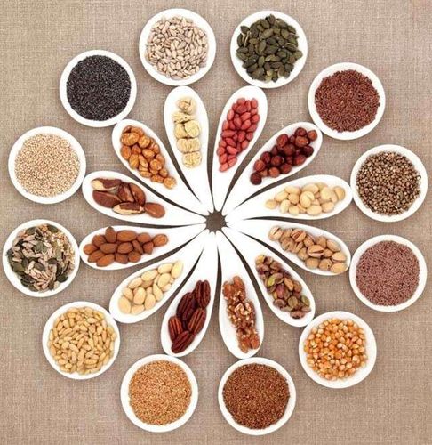 बिया: बदाम – ३.५७ , काजू – ५.९९, सुके खोबरे – ५.०, तीळ – १२.२०, शेंगदाणे – ३.९०, मोहरी – ४.८, धने – ३.२६, ओवा –४.५२, खसखस – ४.३४.