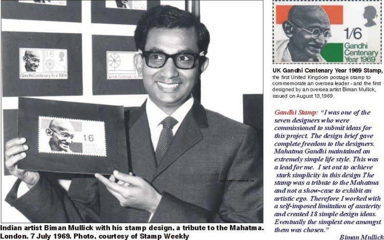 यानंतर बापूंचे अनेक स्टॅम्प वेगवेगळ्या देशात प्रसारित करण्यात आले पण त्यामध्ये इंग्लंडमध्ये प्रसारित झालेला बिमान मलिक या कलाकाराने तयार केलेला गांधीजींचा स्टॅम्प हा जगात उत्कृष्ट दर्जाचा समजला जातो.