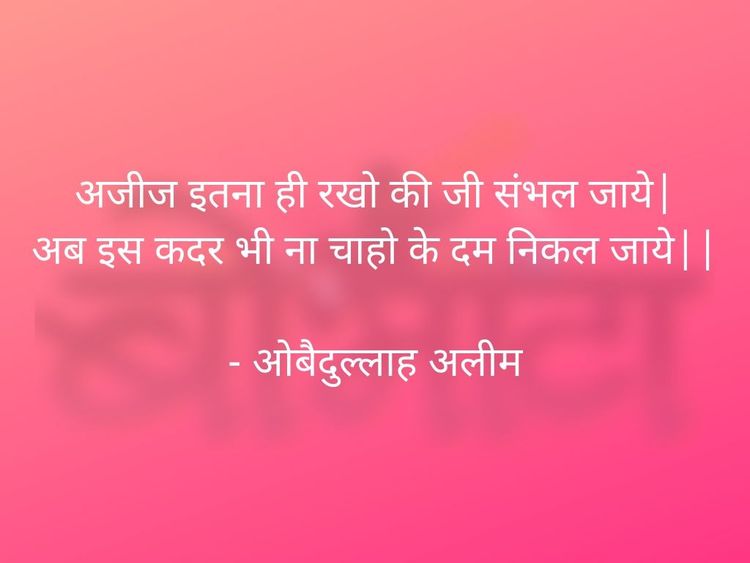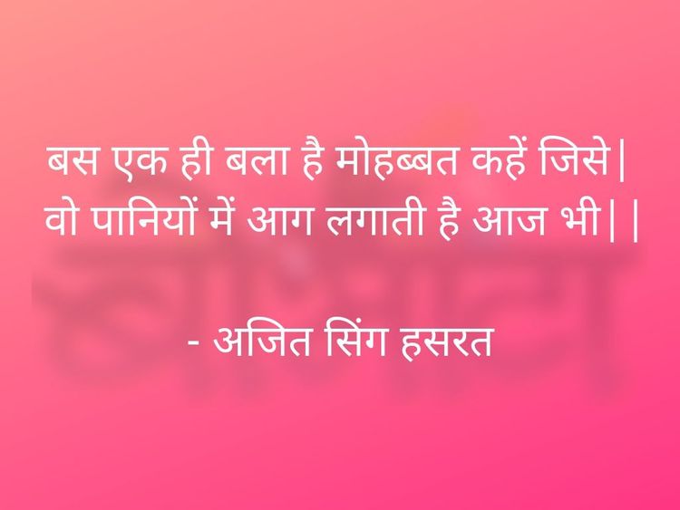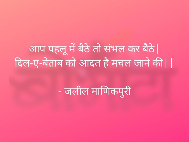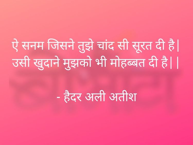 या शायऱ्या तुम्हाला तुमच्या साथीदाराबद्दल प्रेम व्यक्त करायला नक्कीच उपयोगी पडतील. या शायरांनी आपल्या अफलातून पद्धतीने प्रेम व्यक्त केले,आणि ते आपल्या प्रेमीच्या मनाबरोबरच रसिकांच्या मनातसुद्धा अमर झाले आहेत. पण या शायऱ्या सिनेमातल्या नेहमीच्या घासून गुळगुळीत झालेल्या नाहीत बरं, हे आहेत 'खास' शेर, तुमच्या खास व्यक्तीसाठी!!