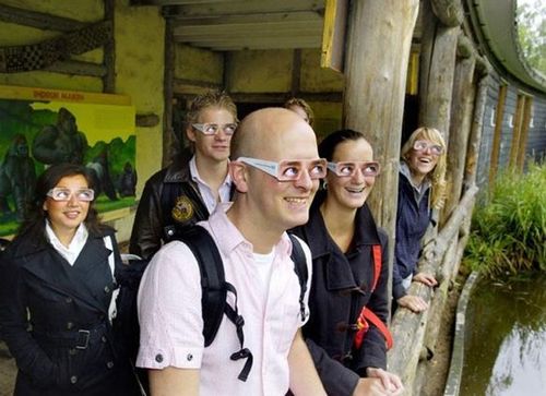 काही प्राणीसंग्रहालयात पर्यटकांना वरती दाखवलेल्या फोटोत दिसत आहेत तसले गॉगल्स दिले जातात! या गॉगल्समुळे माणसं तिरकी बघत आहेत असा भास होतो. याचं कारण विचारलं असता त्यांनी सांगितलं की काही गोरिलांच्या डोळ्यात जर तुम्ही थेटपणे बघितलं तर ते चिथावले जाऊ शकतात! त्यांना वाटावं की आपल्याला बघायला आलेली माणसं आपल्याकडे बघत नसून तिसरीकडेच बघत आहेत म्हणून हा सगळा खटाटोप! DDB कंपनीने हे असले तिरळी नजर असणारे गॉगल्स तयार केले आहेत. 2००७ मध्ये बोकिटो नावाचा एक गोरिल्ला Rotterdam प्राणीसंग्रहालयातून पळाला आणि त्याने एका माणसावर हल्ला केला. नंतर असं कळलं की तो माणूस त्या गोरीलाच्या डोळ्यात डोळे घालून बघत होता! त्यामुळे DDB कंपनीने तिरळे बघणारे गॉगल्स तयार केले आणि त्यांना बोकीटो असं नाव दिलं!