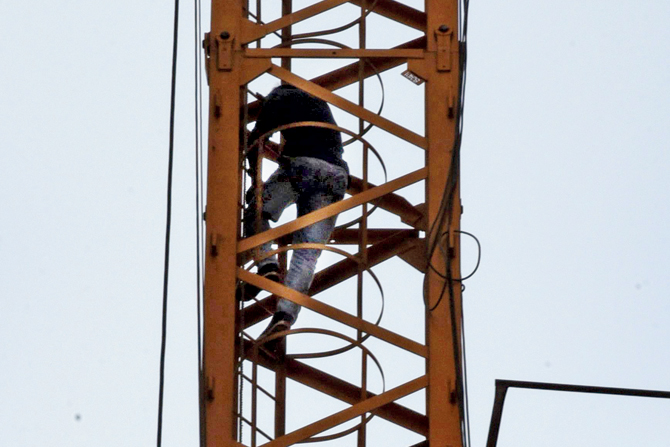 दसऱ्याच्या निमित्ताने सगळ्यांना दुपारीच सुट्टी देण्यात आली होती. सगळे निघून गेले तरी तो पुन्हा इमारतीत आला आणि इमारतीच्या १४ व्या मजल्यावर असलेल्या क्रेनच्या टोकावर जाऊन उभा राहिला. तो तिथूनच आत्महत्या करण्याची धमकी देऊ लागला. खाली उभे असलेले लोक त्याला मागे फिरण्यासाठी विनवणी करत होते.