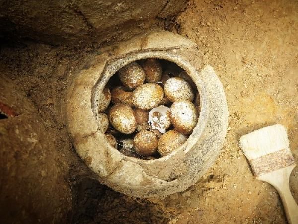सध्या चीनच्या शांगझिंग गावी चीनी राजांची हजार वर्ष जुनी कबर सापडली आहे. उत्खननात या जागी नुकतंच एक मडकं सापडलं. हे मडकं मातीच्या जाड थराखाली दबलेलं होतं. मडकं सुरक्षितपणे बाहेर काढल्यानंतर त्यात २० अंडी आढळून आली. गेल्या हजारो वर्षात अंड्यांच्या आतला भाग नष्ट झाला आहे, पण कवच मात्र सुस्थितीत आहे.