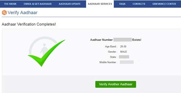 2. हे तुम्हाला एका नव्या पानावर घेऊन जाईल. तिथे तुमचा आधार नंबर आणि व्हेरिफिकेशन टेक्स्ट भरून हिरव्या रंगाच्या Verify बटणावर क्लिक करा.
