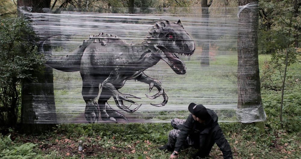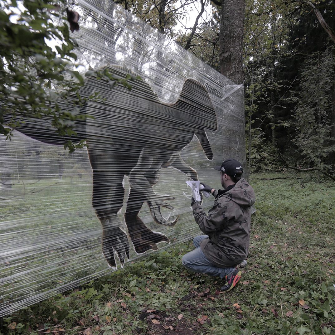 या कलाकाराचं नाव आहे ‘एव्हेन्जी चेस’. या कलेला तो ‘सेलो-ग्राफिटी’ म्हणतो. त्याने आपल्या या कलाकारीसाठी जागाही थोडी हटके निवडली आहे. तो चक्क जंगलाच्या मधोमध हे काम करतो. त्याच्या कामाची सुरुवात होते ती सेलोफोन प्लास्टिकला जंगलातल्या दोन झाडांच्या मध्ये गुंडाळण्यापासून. याचा आकार इतका मोठा असतो की त्यावर एक अवाढव्य चित्र काढता येतं. त्यानंतर तो स्प्रेच्या मदतीने या प्लास्टिक कॅनव्हासवर अगदी खरी दिसतील अशी चित्रे काढतो. या कामासाठी त्याला तासंतास झटावं लागतं. एक प्रकारे ही स्प्रे-पेंटिंग सुद्धा आहे.