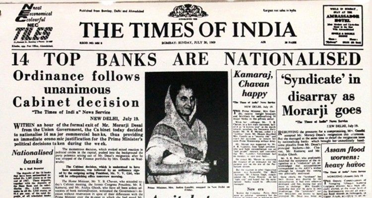 एकेकाळी देशातल्या बहुसंख्य बँका वेगवेगळ्या उद्योग समूहांकडेच होत्या. पण १९६९ साली त्यांचे रातोरात राष्ट्रीयीकरण करण्यात आले होते. बोभाटाच्या अनेक वाचकांना ५० वर्षांपूर्वी काय घडले होते याची कल्पना नसेल म्हणून आजच्या लेखात आपण राष्ट्रीयकरण, त्यासोबत जोडले गेलेले राजकारण, सत्तेत असलेल्या काँग्रेस पक्षाचे दुभाजन या सर्व मुद्द्यांचा आढावा घेणार आहोत.