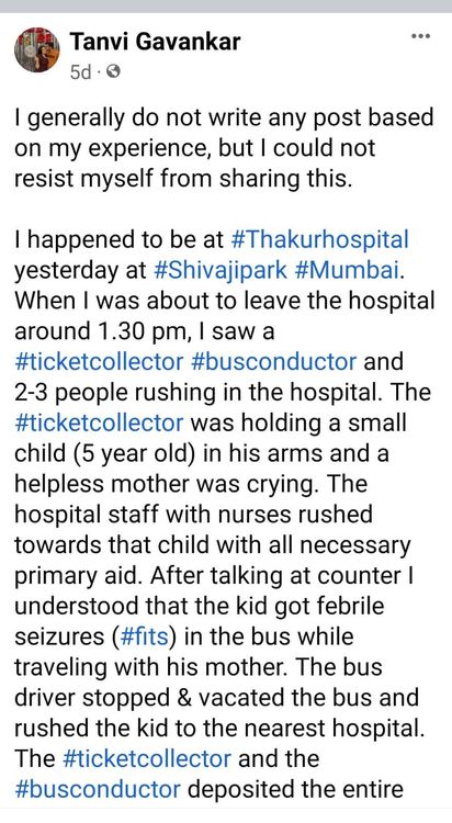 त्यांना बेस्ट कर्मचाऱ्यांचे खूप कौतुक वाटले. म्हणून त्यांनी हे सोशल मीडियावर शेयर केलं. पाहता पाहता ही बातमी वाऱ्यासारखी पसरली. खुद्द सचिन तेंडुकरसह अनेक सेलिब्रेटींनी बेस्ट कर्मचाऱ्यांचे कौतुक केले. त्यांनी जी माणुसकी दाखवून तत्परता दाखवली त्यामुळे त्या लहान मुलाचा जीव वाचला.