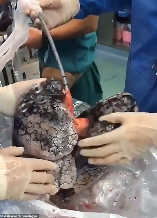 मंडळी, हा माणूस नुकताच मेला. त्याच्या मृत्यूला कारणीभूत होता फुफ्फुसांचा आजार. हा आजार किती गंभीर होता हे तुम्ही बघतच आहात. त्याच्या मृत्युनंतर डॉक्टरांनी त्याचं फुफ्फुस बाहेर काढलं. त्यावेळी हा व्हिडीओ रेकॉर्ड करण्यात आला.