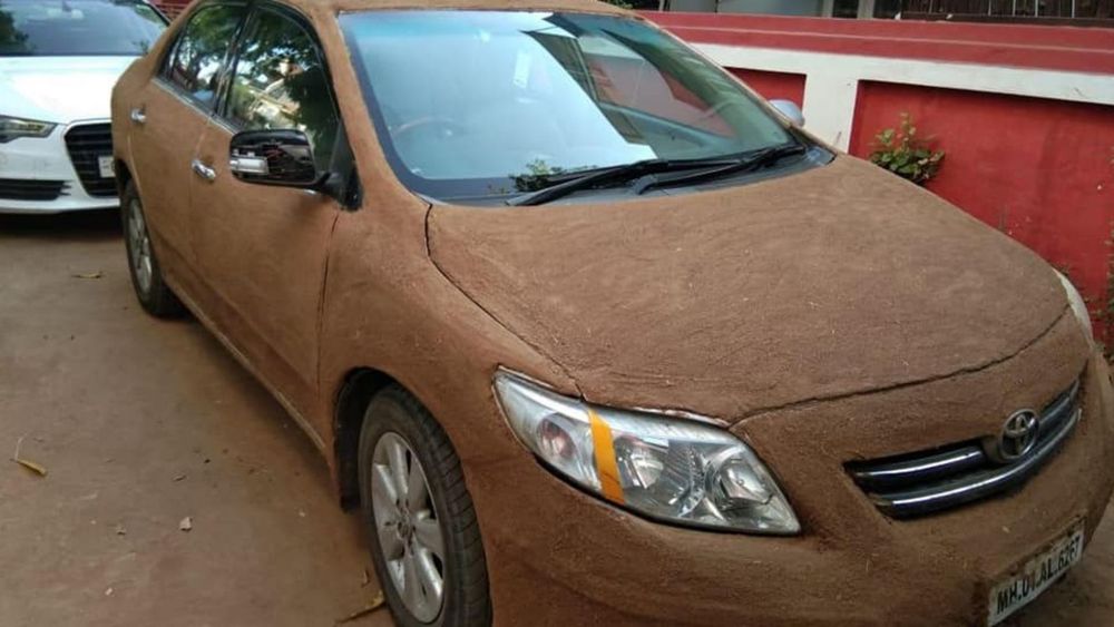 मंडळी, आपल्या गावाकडं घराच्या भिंतींना शेणाचा लेप देण्याची फार जुनी पद्धत आहे. ही पद्धत कारसाठी पण वापरली जाऊ शकते हे आज पहिल्यांदा समजलं. अहमदाबादच्या ४५ डिग्री तापमानात कार थंड राहावी म्हणून शेजल शाह हिने ही आयडिया केली आहे.