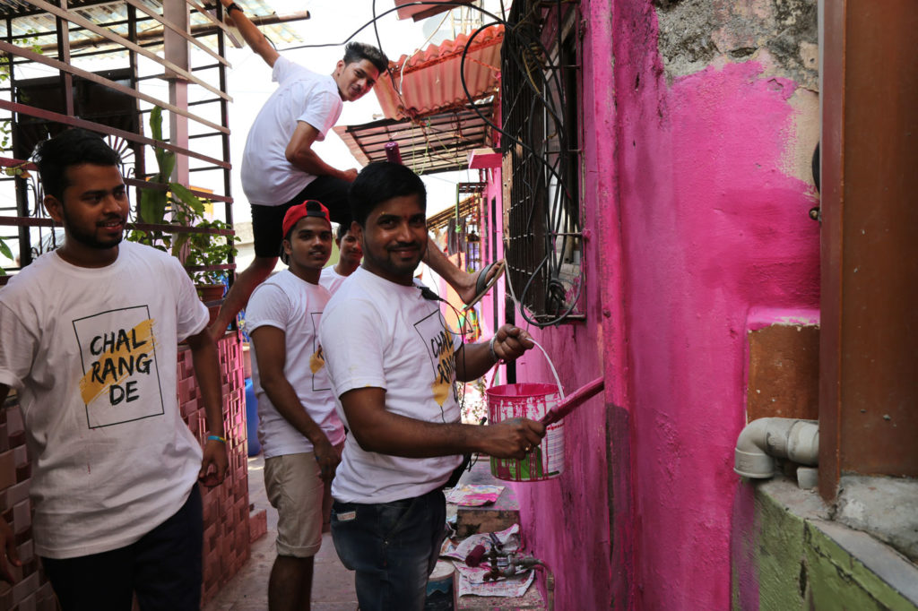 जर संपूर्ण मुंबईच्या झोपडपट्ट्या अशा रंगीबेरंगी झाल्या, तर ह्याच झोपड्या पर्यटकांसाठी नवा पर्याय ठरतील. मंडळी, हे आता शक्य होणार आहे “चल रंग दे” या मोहिमेमुळे. ‘FruitBowl Digital’ या कंपनीनं ‘मुंबई मेट्रो वन’, ‘Snowcem Paints’ and ‘Co.Lab.Oratory Asia’ बरोबर मिळून हा उपक्रम सुरु केला आहे.