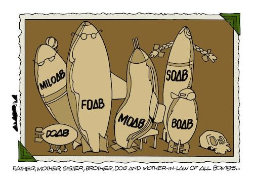मंडळी, आई आहे तर बाबा सुद्धा असणारच ना. रशियाने अमेरिकेच्या बॉम्बला उत्तर म्हणून २००७ साली “फादर ऑफ ऑल बॉम्ब” FOAB तयार केला होता. रशियाच्या दाव्यानुसार हा बॉम्ब अमेरिकेच्या MOAB पेक्षा चार पटीने अधिक शक्तिशाली आहे. या दाव्यावर अमेरिकन तज्ञांनी प्रश्न उभे केले होते. यावर रशियाने ११ सप्टेंबर २००७ साली बॉम्बचं यशस्वी परीक्षण करून दाखवलं होतं. रशियाने हा बॉम्ब युद्धात वापरलेला नाही.