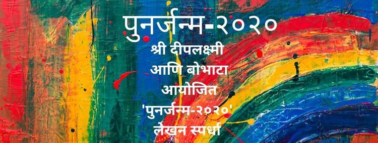 या पुनर्जन्मानंतरचे आयुष्य जगताना या बदलांची भूमिका महत्वाची असेल. तर यानंतरचे आपले आयुष्य कसे कसे असेल याबद्दल बरेच विचार मनात जमा झाले असतील. हे विचार लेखाद्वारे प्रकट करण्याचा तुमचा मनोदय असेल तर 'श्री दीपलक्ष्मी आणि बोभाटा' आयोजित 'पुनर्जन्म २०२०' स्पर्धेत भाग घ्या असा आमचा आग्रह आहे.