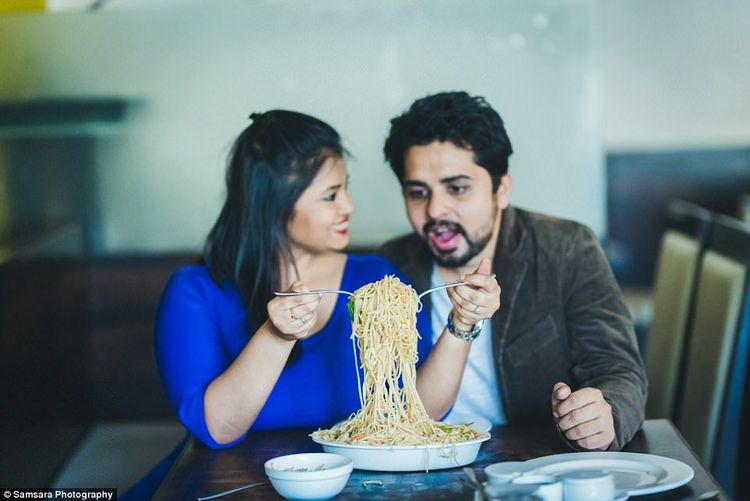 टिपिकल बॉलीवूड स्टाईल प्री-वेडिंग शूटला फाटा देत विनित आणि विशाखा यांनी आपल्या खवय्येगिरीला प्री-वेडिंग शूटमध्ये सामील करून घेतलंय. मासे, तंदुरी चिकन, डोनट्स, नुडल्स, डोसा, इडली ते पान, चहा, कॉफी, आईस्क्रीम असं जे जे दोघांना आवडतं, त्याच्या बरोबरीने दोघांनी फोटोशूट केलंय. या सर्व फोटोंमध्ये त्याचं एकमेकांवरचं प्रेम तर दिसत आहेच, पण त्याचं खाण्यावर किती प्रेम आहे हे सुद्धा भरभरून दिसतंय.