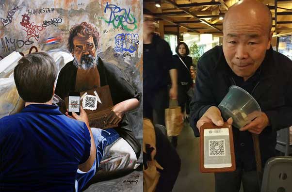 चीनी भिकारी चीनमधल्या प्रसिद्ध पर्यटनस्थळांवर व मेट्रो स्थानकांवर आढळतात. त्यांच्याकडे क्यूआर कोडचा एक प्रिंटआउट असतो. लोकांच्या खिशात सुट्टे नसतील तर हे भिकारी ‘क्यूआर कोड’ स्कॅन करून भीक देण्याची विनंती करतात. या मंडळींमध्ये अलिबाबा कंपनीचा ‘अली-पे’ किंवा ‘व्ही-चॅट वॉलेट’ प्रसिद्ध आहे.