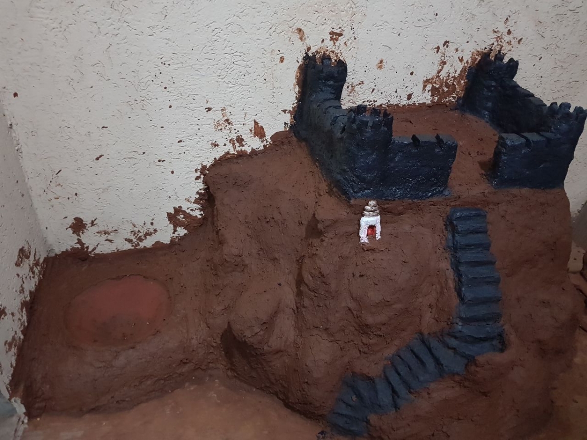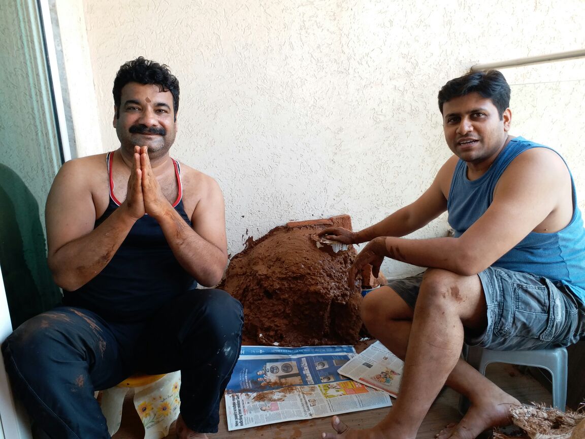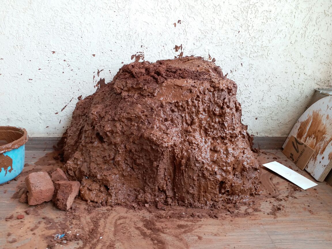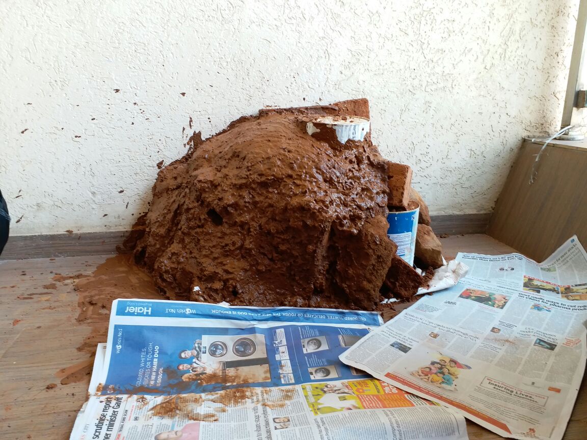 पेव्हर ब्लॉकच्या अंगणात माती मिळणार कशी ? थोडक्यात किल्ला बांधायचा तर रजा घेणे अपरिहार्य झालं. मग, नर्सरीतून माती, घरच्या कामातून उरलेले रंगांचे डबे, घोडबंदर रोडच्या खाडीवरून दगड आणि तिथल्याच ढिगाऱ्यातून सिमेंट ब्लॉक्सचे तुकडे मिळाले.