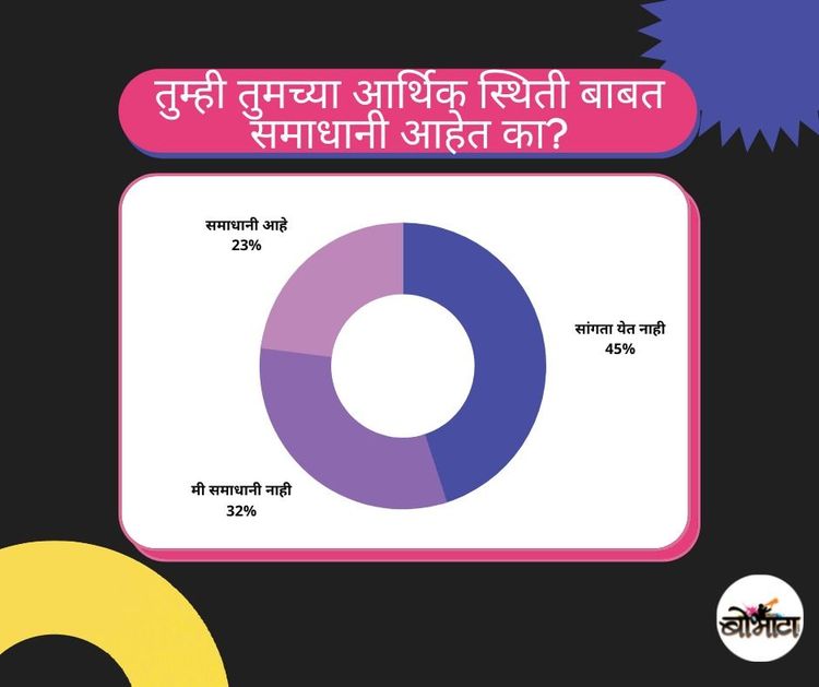 आता खरं सांगायचं तर 'बोभाटा'नेच असा सर्व्हे काही महिन्यांपूर्वी केला होता.आता या दोन्ही सर्वेक्षणात काय उत्तरं मिळाली ती तुमच्यासमोर ठेवतो आहेच. आमच्या सर्वेक्षणात मात्र हे प्रमाण इतके मोठे आढळलेले नाही. तरीपण बर्याचजणांना महिनाभर पैसे पुरत नाहीत ही सत्यस्थिती आहे.खर्चाचा अंदाज येत नाही.नियोजन करता येत नाही.अचानक संकटे उभी राहतात.अनेक वेगवेगळी कारणे समोर येतात.आमचे सर्वेक्षण काय सांगते ते आता बघा ! सोबत या प्रश्नांची उत्तरं तुम्ही कमेंट्मध्ये दिलीत तर सर्वेक्षणाला अधिक मान्यता मिळेल.