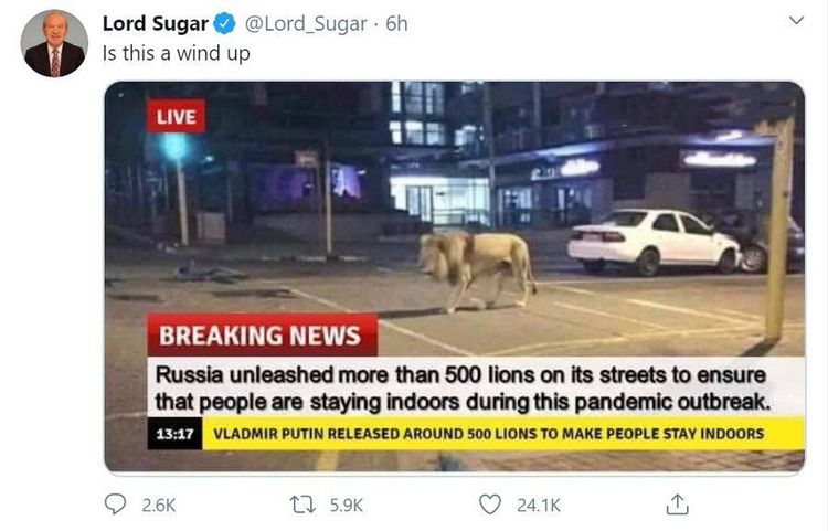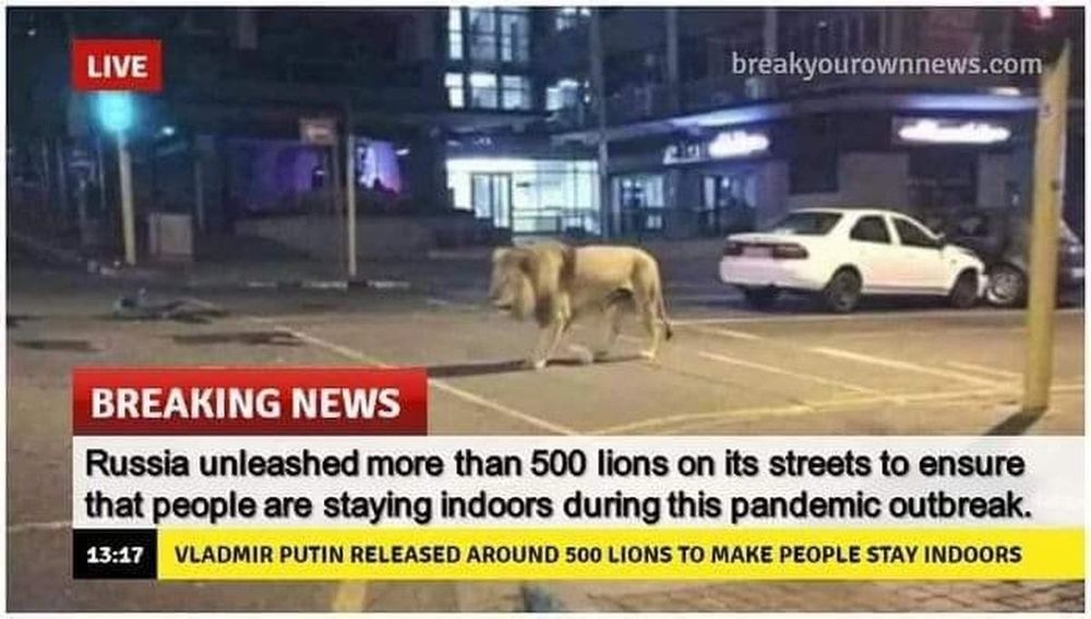 रशियाचे राष्ट्राध्यक्ष व्लादिमिर पुतीन म्हणजे गब्बर माणूस. COVID-19 रोगाच्या वाढत्या प्रभावामुळे त्यांनी रशियन जनतेला दोनच पर्याय दिले आहेत. एक तर घरात राहा किंवा ५ वर्षांचा कारावास भोगा. एवढंच नाही तर लोकांनी घरातच राहावं यासाठी रशियाच्या रस्त्यावर सिंह सोडण्यात आलेत.