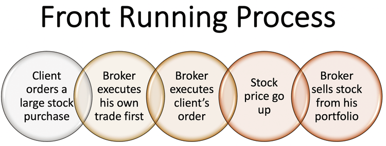 म्युच्युअल फंडांची शेअरबाजारातील खरेदी विक्री अत्यंत गोपनीय पध्दतीने केली जाते. किंबहुना इतर कुठेही म्हणजे ब्रोकरच्या ऑफीसातही गोपनियता पाळली जाते. आता समजा, ही माहिती वेळेआधीच फुटली तर काय घडेल? ज्याला आधी माहिती मिळेल तो इतरांच्या आधीच खरेदी किंवा विक्री करून भरपूर नफा कमावू शकेल. आता आधी म्हणजे किती आधी? तर अगदी १५ ते २० सेकंद आधी बातमी मिळाली तरी करोडो रुपयांचा फायदा होऊ शकतो. आता ज्या माणसाच्या हातात अॅक्सिस म्युच्युअल फंडाच्या सात स्किमचे पैसे आहेत त्याच्याकडे गोपनिय माहितीचे कोठारच असते. चहूबाजूंनी त्याच्याकडे बातम्या येतच असतात. त्याचे अॅनालिस्ट त्या माहितीचा अर्थ लावून खरेदी-विक्रीचा सल्ला देतच असतात. या माहितीच्या जोरावरच स्किमसाठी पैसा कमावला जातो. सांगायचा मुद्दा असा आहे की जी गोपनिय माहिती वापरून नफा करता येतो ती माहिती आपल्या मालकाला म्हणजे म्युच्युअल फंडाला न देता वैयक्तिक फायद्यासाठी वापरली जाणे म्हणजे फ्रंट रनींग! सोप्प्या भाषेत या कर्मचार्यांनी पेपर फोडला आणि कमाई केली.
