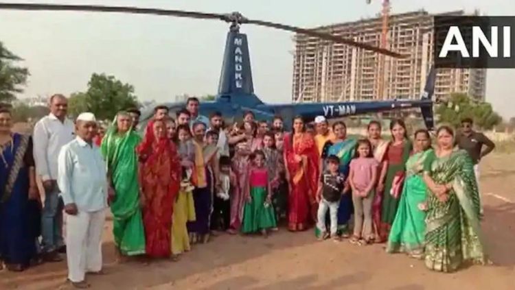 पुण्यातील बालेवाडी येथे मात्र घरात मुलगी झाली म्हणून आनंद झालेल्या आजोबांनी थेट हेलिकॉप्टर मागवून नातीला या हेलिकॉप्टरमधून घरी आणले आहे. बालेवाडी येथील अजित पांडुरंग बालवाडकर यांनी तब्बल लाखभर रुपये खर्च करून नातीला घरी आणले.