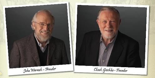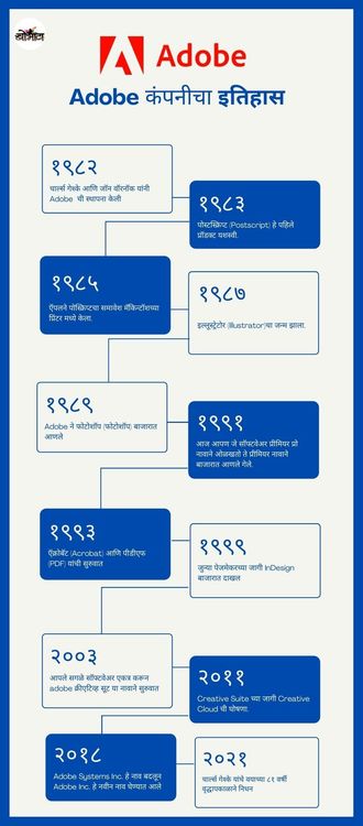 अडोबीची स्थापना १९८२ मध्ये चार्ल्स गेश्के आणि जॉन वॉरनॉक यांनी केली. हे दोघं आधी झेरॉक्स कॉर्पोरेशन (आपण जी झेरॉक्स काढून आणतो, ती या कंपनीचीच देन) या कंपनीत ग्राफिक रीसर्चचं काम करत होते. पण त्यांनी विकसित केलेली उत्पादनं रीसर्च स्टेजच्या पुढे जायला तयार नव्हती. म्हणजे झेरॉक्स कंपनी तसं काही होऊ देत नव्हती. शेवटी निराश होऊन दोघांनी कंपनी सोडण्याचा आणि स्वतःचा नवीन उद्योग सुरू करण्याचा विचार केला आणि त्यांच्या घराजवळून वाहणाऱ्या एका खाडीच्या नावावरून अडोबी ही कंपनी जन्माला आली.