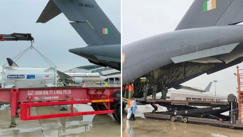 सिंगापुरने भारतात ४ क्रायोजिनिक ऑक्सिजन टॅन्कस पाठवले आहेत. ते भारतीय एयर फोर्सद्वारे आणले गेले आहेत.