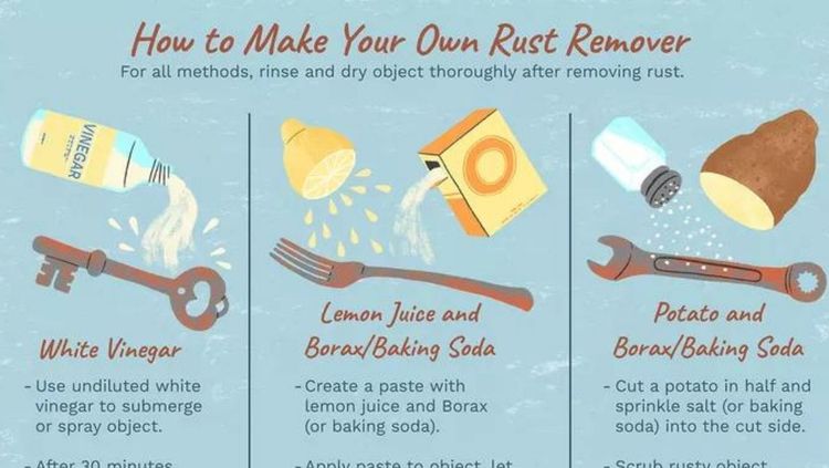 स्टेनलेस स्टील गंजण्यास प्रतिरोधक आहे. पण तरीही दीर्घकाळ पाण्याशी संपर्क आला तर ते गंज धरू शकते. त्यामुळे शक्यतो पाण्याचे डाग त्वरित पुसले पाहिजेत. कोरड्या फडक्याने पुसून असे डाग स्वच्छ करावेत. गंज तयार होऊ लागल्यास, बेकिंग सोडा आणि पाण्याची पेस्ट तयार करा, नंतर टूथब्रश वापरून सोड्याचे हे द्रावण गंजलेल्या डागांवर घासून घ्या.