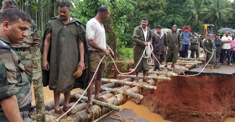 मल्लापुरम भागात पुरामुळे संपूर्ण रोड वाहून गेला होता. मधून वाहणाऱ्या नदीने वाहतूक ठप्प पडली होती. यावर उपाय म्हणून भारतीय सैन्यातील इंजिनियर टास्क फोर्सने तब्बल ४० फुट पूल तयार केला आहे. राव, केरळ मधली स्थिती बघितली तर भक्कम पूल बांधणं शक्य नाही म्हणून पूल बांधण्यासाठी सैन्याने चक्क स्थानिक साधनांचा वापर केला आहे. पुरामुळे जी झाडं पडली, त्यांची ओंडकी वाहून आणून हा पूल बांधण्यात आला आहे. पूल बांधण्यासाठी सैन्याच्या मदतीला स्थानिक लोकही धावून आले होते.