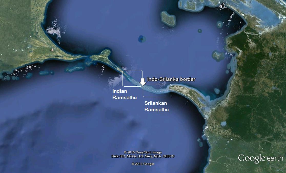 भारत आणि श्रीलंकेदरम्यानची सीमा ही जगातील सर्वात लहान आंतरराष्ट्रीय सीमांपैकी एक आहे. भारताच्या दक्षिण-पुर्व समुद्र किनार्यावरील रामेश्वरम बेटाला आणि श्रीलंकेच्या मन्नार बेटाला जोडणारा हा ३० कीलोमीटर्स लांबीचा रामसेतू आहे. त्यालाच अॅडम्स ब्रिजही म्हटलं जातं. भौगोलिक रचनेनुसार चुनखडीने बांधलेला हा सेतु एकेकाळी भारत आणि श्रीलंकेला जोडणारा दुवा होता जो आज पाण्याखाली गेलाय.
