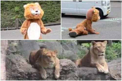 जपानमधल्या एका प्राणी संग्रहालयात काही दिवसांपूर्वी एखादा सिंह प्राणीसंग्रहालयातुन पळून जात असेल तर त्यासाठी काय करावे यावर प्रशिक्षण देण्यात येत होते. पण मंडळी या कामासाठी खरा सिंह वापरला तर प्रॉब्लेम होऊ शकला असता. त्याला शिकवण्याच्या नादात तोच पळून गेला तर? मग तिथल्या अधिकाऱ्यांनी एक भारी आयडीया शोधून काढली. त्यांनी चक्क एका माणसालाच सिंहाचे कपडे घातले आणि त्यांच्या अधिकाऱ्यांना त्या नकली सिंहासोबत ट्रेनिंग घ्यायला सांगितले. पण मंडळी, या नंतरची गोष्ट खरी रंजक आहे. नंतर असे काही झाले कि तो विडिओ चांगलाच वायरल झाला. प्राणी संग्रहालयाच्या आवारात सिंहासारखा पोशाख करून फिरणाऱ्या माणसाच्या व्हिडिओला चक्क ४३ लाख व्ह्यूज मिळाले राव!! हा पाहा तो व्हिडीओ !!
