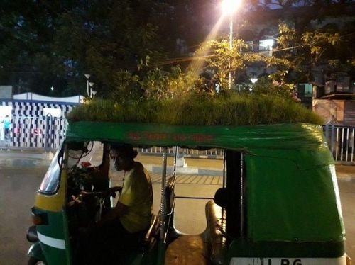 ही वेगळी कल्पना दिल्लीच्या टॅक्सी चालकाने पण करून बघितली आहे. त्याने टॅक्सीवर बाग तयार केली आहे. टॅक्सीला नाव दिलं आहे “ग्रीन गड्डी”. कोलकाताच्या टॅक्सी चालकाने पण आपल्या टॅक्सीवर हिरवळ उगवली आहे, पण या महाशयांनी टॅक्सीच्या आतला भाग पण रिकामा सोडलेला नाही. टॅक्सीच्या आत लहानसहान रोपटी आहेत.