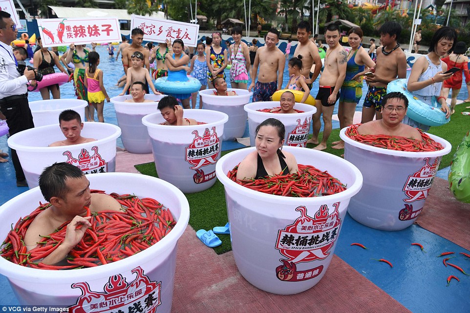 मंडळी, जगात अनेक विचित्र स्पर्धा असतील. पण मिरच्यांच्या तलावात बसून मिरच्या खाण्याची स्पर्धा म्हणजे डोक्याला शॉट आहे. भाऊ, आम्ही चीनमधल्या स्पर्धेबद्दल बोलतोय जिथे मिरच्यांनी भरलेल्या पाण्यात बसून तिखटानं तोंड भाजणारी मिरची खावी लागते. हे एवढंच पुरेसं नसतं की काय म्हणून तिथलं वातावरणसुद्धा तापवलेलं असतं. एकंदरीत खालून आणि वरून दोन्हींकडून धूर काढायचा पूर्ण बंदोबस्त झालेलाअसतो.