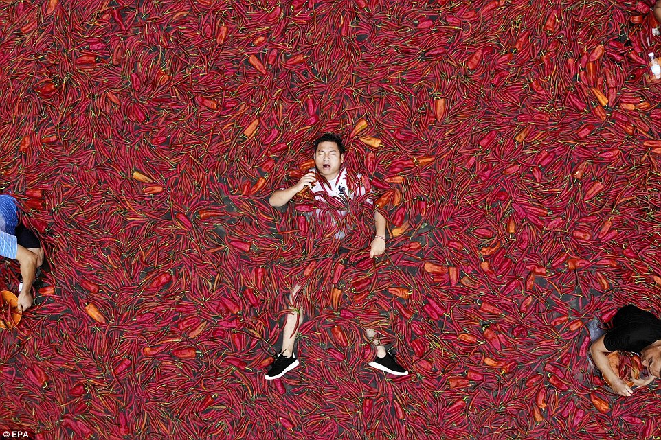मंडली, हुनान हा भाग तिथल्या तिखट पदार्थांसाठी प्रसिद्ध आहे. त्यामुळे तिथे तिखट जहाल मिरच्यांची रेलचेल असते. स्पर्धेत एका मिनिटात माणसाच्या डोळ्यातून पाणी काढतील अशाच मिरच्यांचा समावेश केला गेला होता.