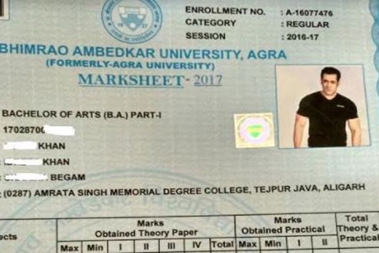 मंडळी, हा सगळा प्रकार आहे उत्तरप्रदेशच्या आग्रा विद्यापीठाने तयार केलेल्या बोगस मार्कशीटचा. या मार्कशीट नुसार सलमान खानाने आग्रा विद्यापीठातून बी. ए. च्या प्रथम वर्षाची परीक्षा चक्क ३५ टक्के गुण मिळवून पास केली आहे. (सलमान सुद्धा काठावर पास बाबो !!)