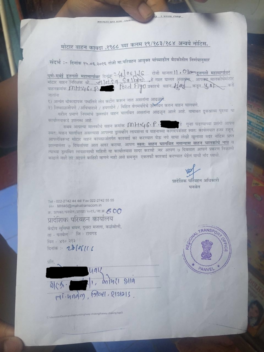 गोपनीयता जपण्यासाठी आम्ही व्यक्तिगत माहिती लपविली आहे. पण म्हणजे आता मुंबई-पुणे हायवे वर गाडी चालवताना सावध राहायला हवं