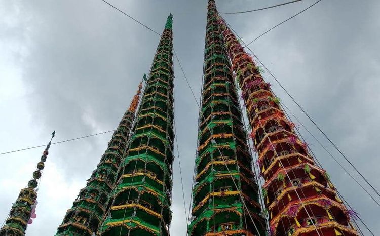हे डोले बनवणं भारी अवघड काम असतं आणि त्याहून अवघड असतं ते वाहून नेणं. आधी कळस आणि मग पाया या तत्त्वावर ते बनवले जातात. बांबूंना सुतळीने बांधून त्यांचा सांगाडा बनवला जातो, त्यावर शेतातल्या मातीचे थर देऊन घड्यासारखे आकार बनवले जातात आणि सर्वात शेवटी हे डोले बेगडी कागदांनी सजवले जातात. डोला उभा राहिला की त्याला फुलांनी आणि नोटांच्या माळांनी सजवलं जातं. एकेक डोला कित्येक फूट उंच असतो. हे डोले खांद्यावरुन वाहून गावच्या मैदानात भेटींसाठी नेले जातात. डोला पडू नये, कोसळू नये म्हणून खूपच काळजी घेतली जाते. यासाठी सर्व बाजूंनी दोर बांधून त्याला नियंत्रित केलं जातं. डोल्याची उंची आणि बनवताना वापरलेल्या ओल्या मातीमुळं त्याचं वाढलेलं वजन, या दोन्ही गोष्टींमुळं डोले एका ठिकाणाहून दुसऱ्या ठिकाणी नेणं अवघड असतं. पण हे मोठ्या उत्साहात केलं जातं.