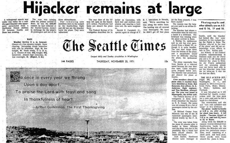 गोष्ट ५० वर्ष जुनी आहे. १९७१ सालची. एक व्यक्ती सुटाबुटात हातात काळ्या रंगाची बॅग घेऊन अमेरिकेच्या एयरपोर्टवर गेला. या इसमाचे नाव डॅन कूपर होते. त्याला डीबी कूपर नावाने देखील ओळखले जायचे. त्याने काउंटरवर जाऊन सियाटलला जाणारी फ्लाईट बोइंग ७२७ चे तिकीट घेतले. त्यांनंतर तो विमानात गेला आणि त्याला मिळालेल्या सीटवर जाऊन बसला. पण इतर प्रवाशांप्रमाणे त्याने आपली बॅग वर न ठेवता स्वतःच्या मांडीवर ठेवली. त्याने काळा सूट, स्टायलिश टाय आणि सनग्लासेस घातले होते. उंचापुरा आणि जवळपास चाळीशीतला वाटणारा हा कूपर पुढे काय कांड करणार याबद्दल कुणालाही अंदाज नव्हता.