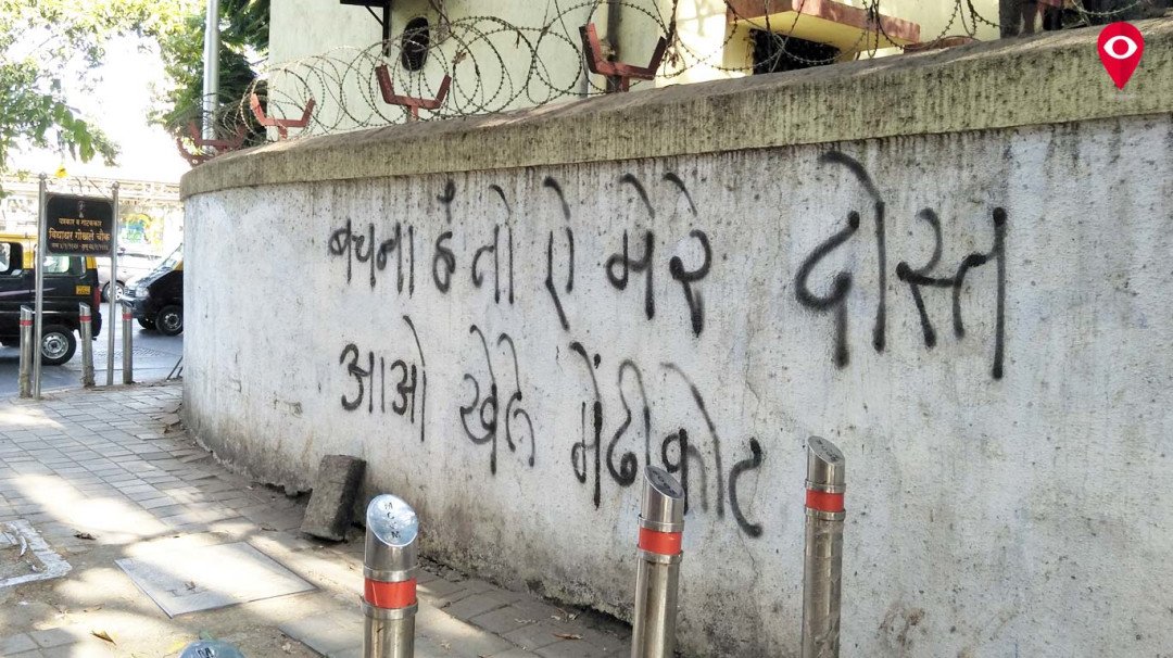 माणसांच्या नजरेत येईल आणि त्यांना दिसेल अश्या जागी जाहिरात लावण्यात येते. शहरातल्या भिंती यासाठी अगदी उत्तम पर्याय असतात. जाहिरात नसली तरी हल्ली बऱ्याच भिंतींवर चित्र रंगवलेली तुम्ही पहिली असतील. भिंतींवर आपली कला सदर करणे ही काही नवीन गोष्ट राहिलेली नाही. मुंबईच्या भिंती अशा कलाकारीने भरलेल्या असताना एका गूढ वाक्याने मुंबईकरांच लक्ष वेधलं आहे.