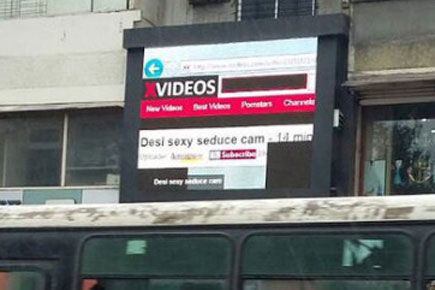 अहो, चुकून दाखवले गेले. तर मंडळी, या स्क्रीनचा ऑपरेटर असावा तुम्हां-आम्हांसारखा शौकीन. त्याने इंटरनेट एक्सप्लोरर ब्राउझरमधून एक्स-व्हिडीओज साईट उघडली. आता बिचारा लपूनछपून बघत असेल पॉर्न. पण त्याच्याकडून बहुदा एक चूक झाली आणि चक्क एक्स-व्हिडियो साईट त्या मोठ्या स्क्रीनवर दिसायला लागली.