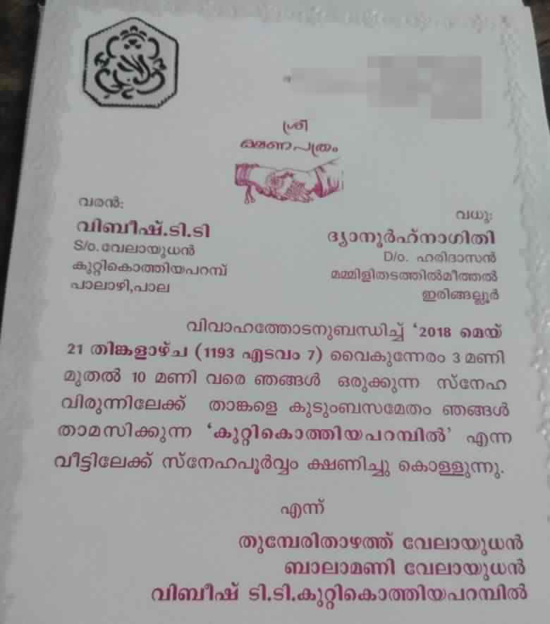 विभेश नावाच्या एका तरुणाने आपली लग्न पत्रिका छापली. ही पत्रिका थोडी हटके होती. पत्रिकेत लिहिलं होतं, “जो कोणी ‘ध्यनूर्हनगीती’ (Dhyanoorhanagithy ) हे नाव बरोबर उच्चारेल त्यालाच लग्नात एन्ट्री मिळेल.” आता हे नाव कोणाचं आहे असा प्रश्न पडणं साहजिक आहे. राव तुम्हाला आश्चर्य वाटेल, पण हे नाव चक्क नवरीचं आहे. तिच्या अवघड नावामुळेच त्याने अशी पत्रिका छापली होती.
