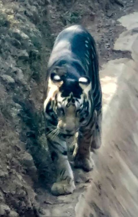 भारतात ओडीसा राज्यात हे दुर्मिळ वाघ पाहायला मिळाले आहेत. ओडीसामधील सिम्लीपाल टायगर रिझर्व्हमध्ये फोटोग्राफर सौमेण बाजापेयी ह्यांना ह्या वाघाचे दर्शन झाले. पक्ष्यांचे फोटो पाहण्यात दंग असताना अचानक झुडुपातून हा वाघ आला. दोन सेकंद थांबला आणि पुन्हा निघून गेला. ह्या २ ते ३ सेकंदात बाजपेयी ह्यांनी काढलेल्या वाघाच्या फोटोंनी लोकांना आश्चर्याचा एक सुखद धक्का दिला आहे.