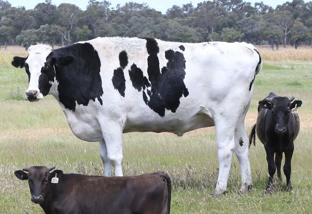 मंडळी, होल्स्टीन फ्रिसियन नावाचा गुरांचा एक प्रकार असतो. या जातीतील गाय सर्वाधिक दुध उत्पादनासाठी प्रसिद्ध आहे. याखेरीज मांस मिळवण्यासाठी या गुरांना वाढवलं जातं. यासाठी त्यांना आधी नपुंसक केलं जातं. नपुंसक (neutered) केलेल्या होल्स्टीन गुरांचा आकार इतर गुरांपेक्षा मोठा असतो. आपण पाहत असलेली गाय याच प्रकारातील आहे.